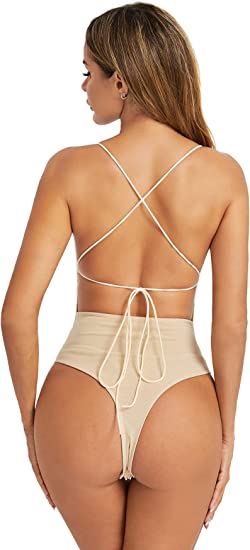 Women's Crisscross Tie Backless Mesh Cami Bodysuit