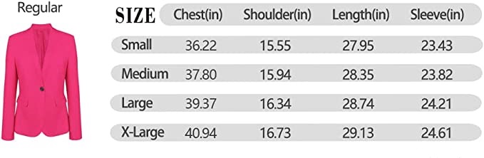 • * Womens blazers for work casual made of high quality texture fabric, for your office time with comfortable wearing. The hot pink blazer jackets for women comes with notched lapel and one button closure in front.